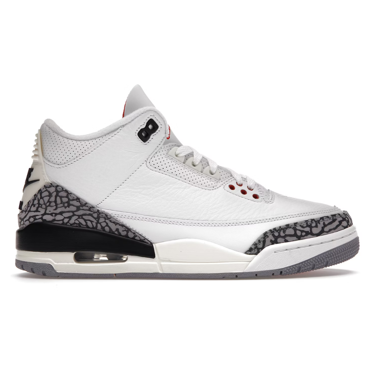 El Jordan 3 Retro es un modelo icónico que introdujo el diseño de Tinker Hatfield con la primera unidad Air visible en un Jordan. Su combinación de cuero premium y detalles de elefante lo convierten en un clásico atemporal del sneaker game.